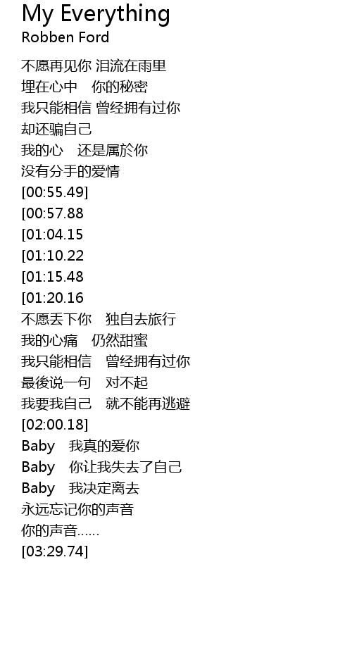 | [02:02.75][00:57.88] | Baby 我还爱着你 |