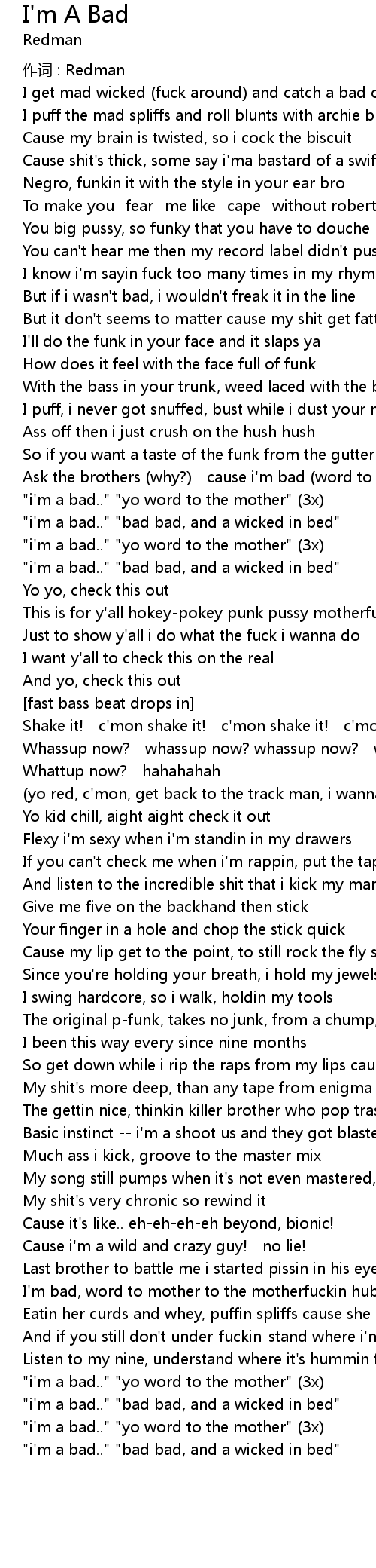 | " i' m a bad.." " yo word to the mother" 3x | |