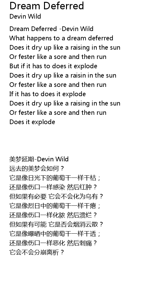 | [00:00.73] | Dream Deferred -Devin Wild |