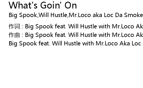| 作词 : Big Spook feat. Will Hustle with Mr.Loco Aka Loc Da Smoke | |