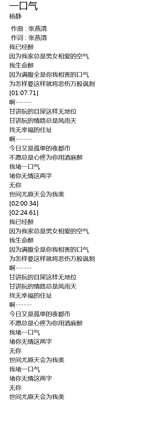 | [01:42.01] | wǒ dǔ yī kǒu qì |