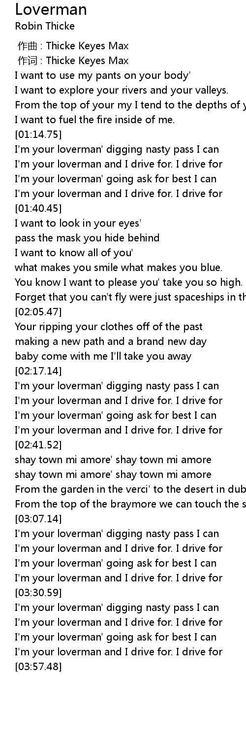 | [03:30.77] | I' m your loverman' digging nasty pass I can |