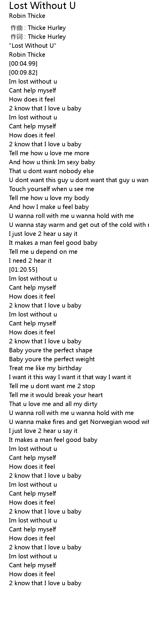 | [02:17.36] | Im lost without u |