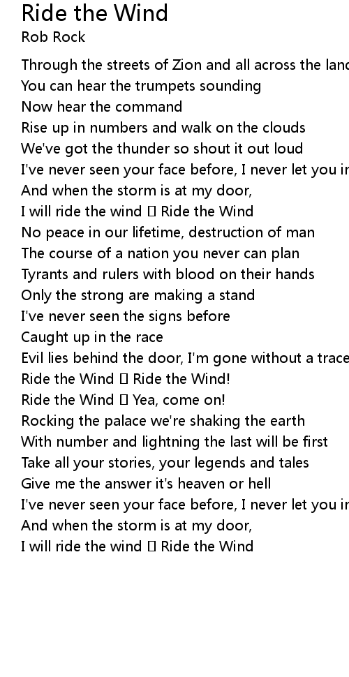 | I will ride the wind Ride the Wind | |