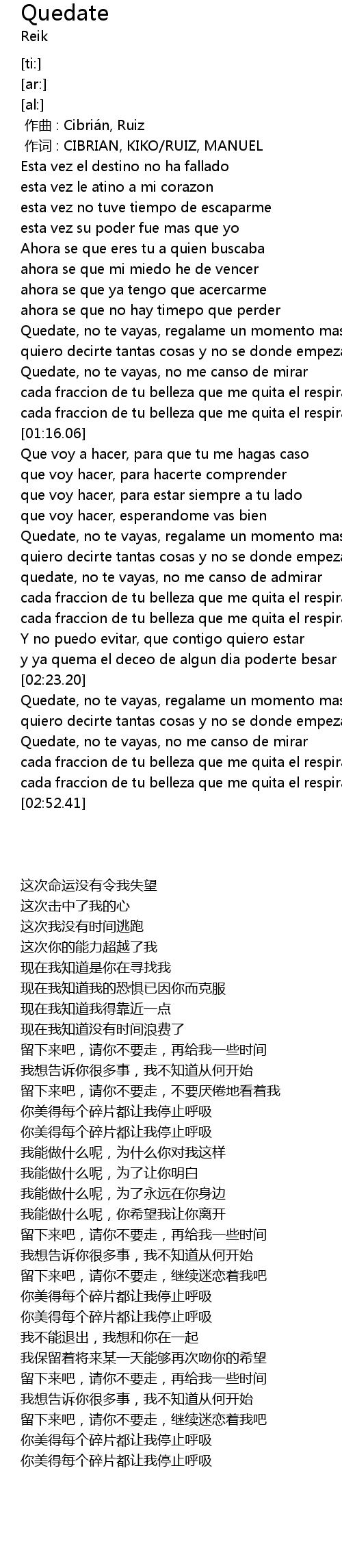 | [01:46.52] | Quedate, no te vayas, regalame un momento mas |