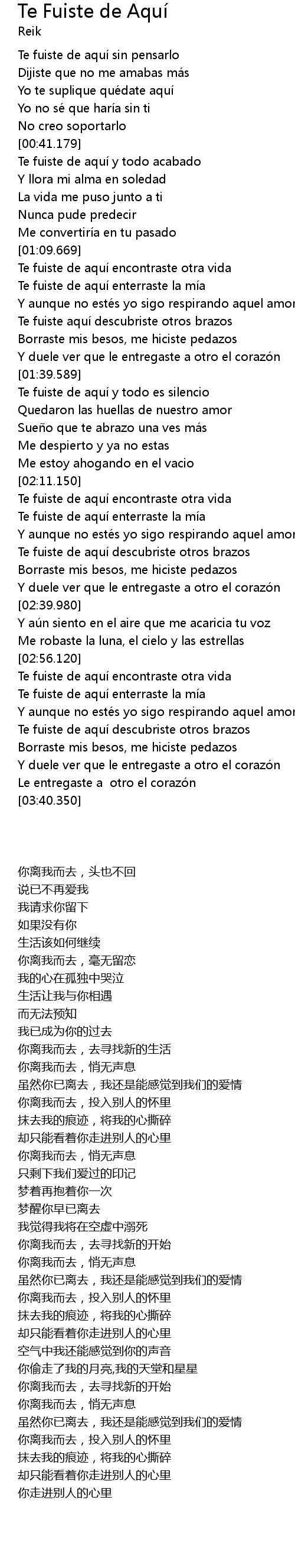 | [00:16.260] | Te fuiste de aqui sin pensarlo |
