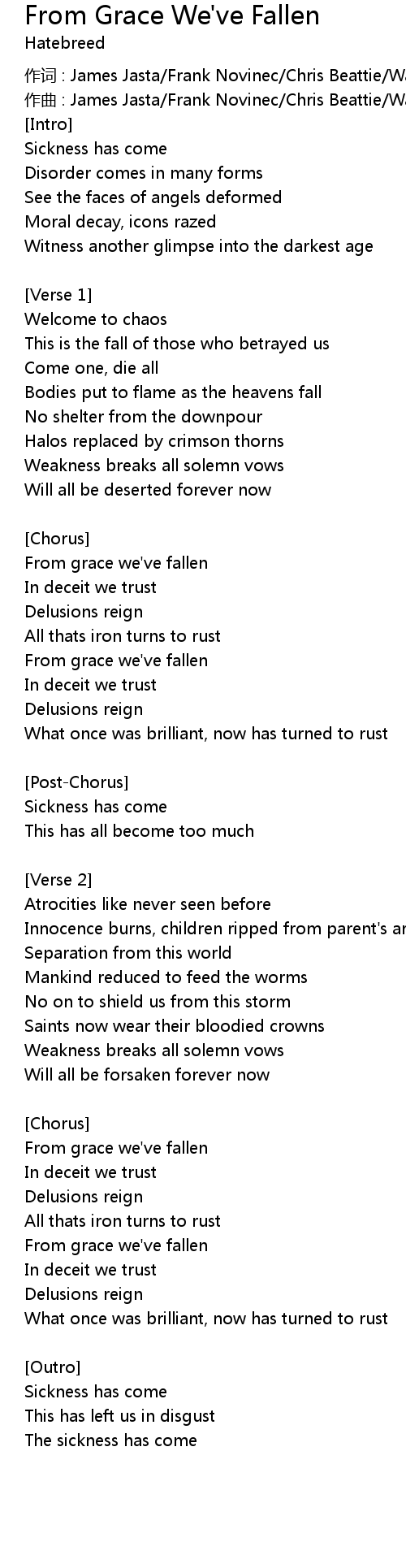 | 作词 : James Jasta/Frank Novinec/Chris Beattie/Wayne Lozinak/Matthey P. Byrne | |