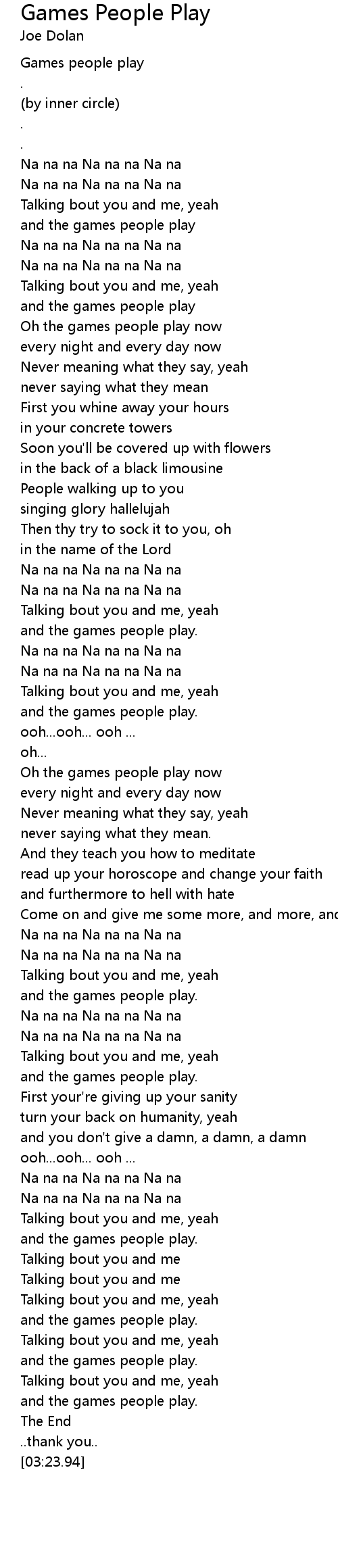 Oh the games people play now |