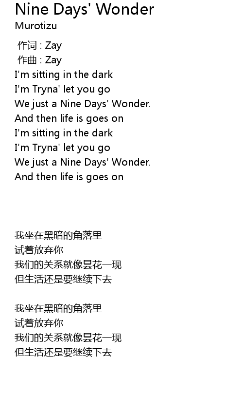 | [00:19.454] | We just a Nine Days' Wonder. |
