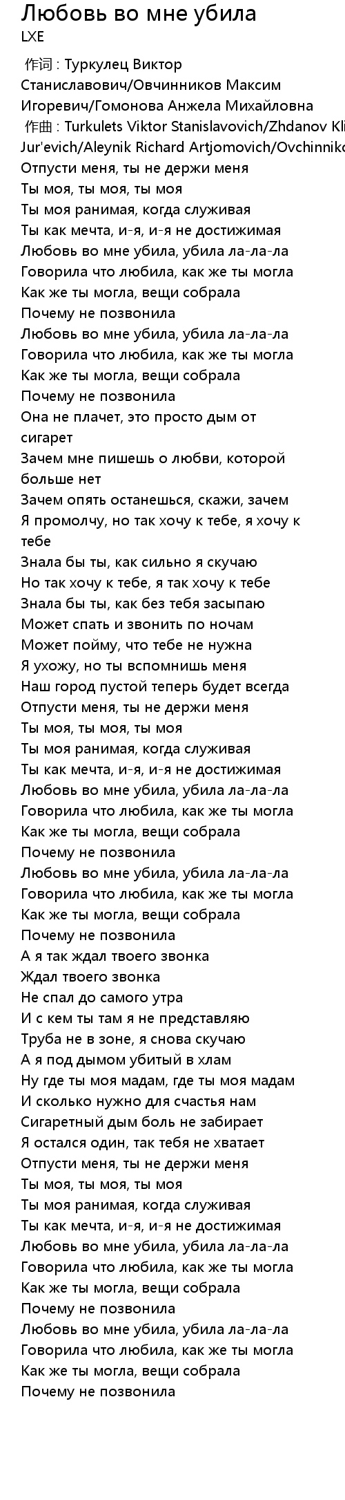Любовь во мне убила, убила ла-ла-ла |