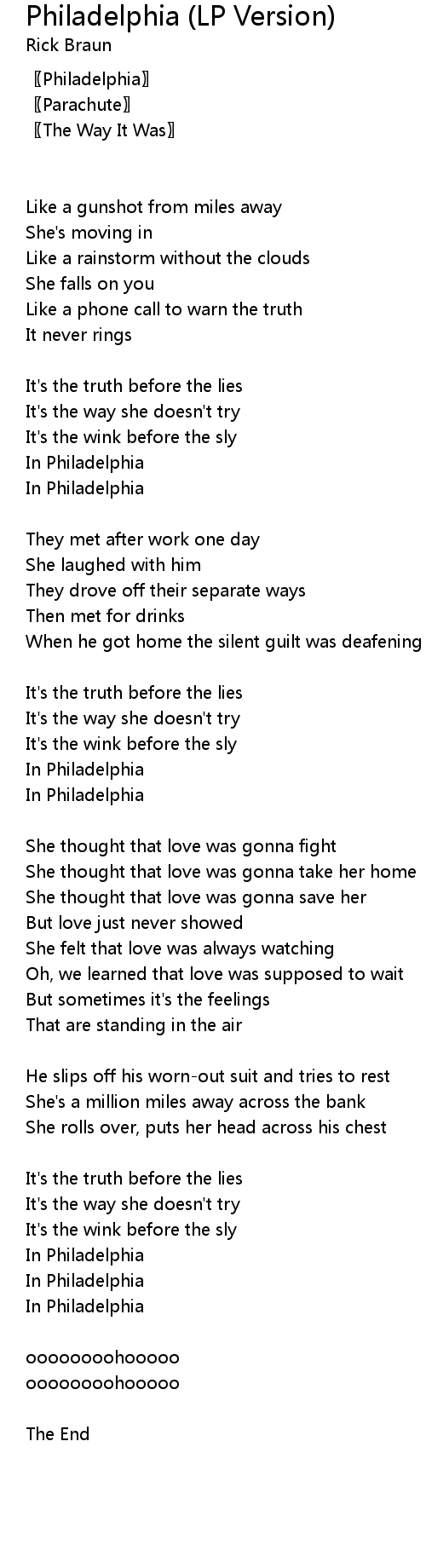 | Song | Philadelphia (LP Version) |