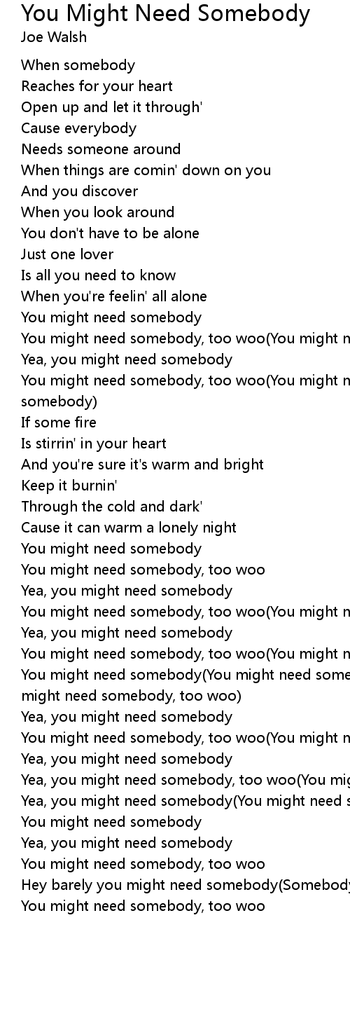 You might need somebody(You might need somebody)(You might need somebody)(You might need somebody, too woo) |
