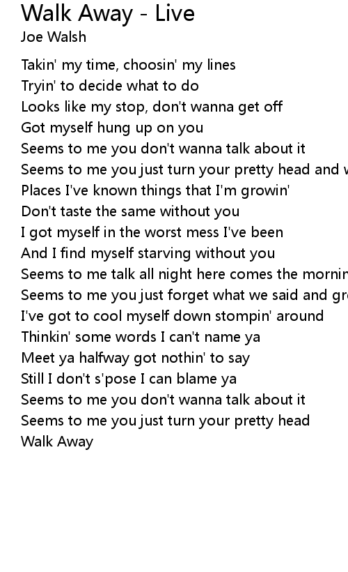 Seems to me you just turn your pretty head and walk away |