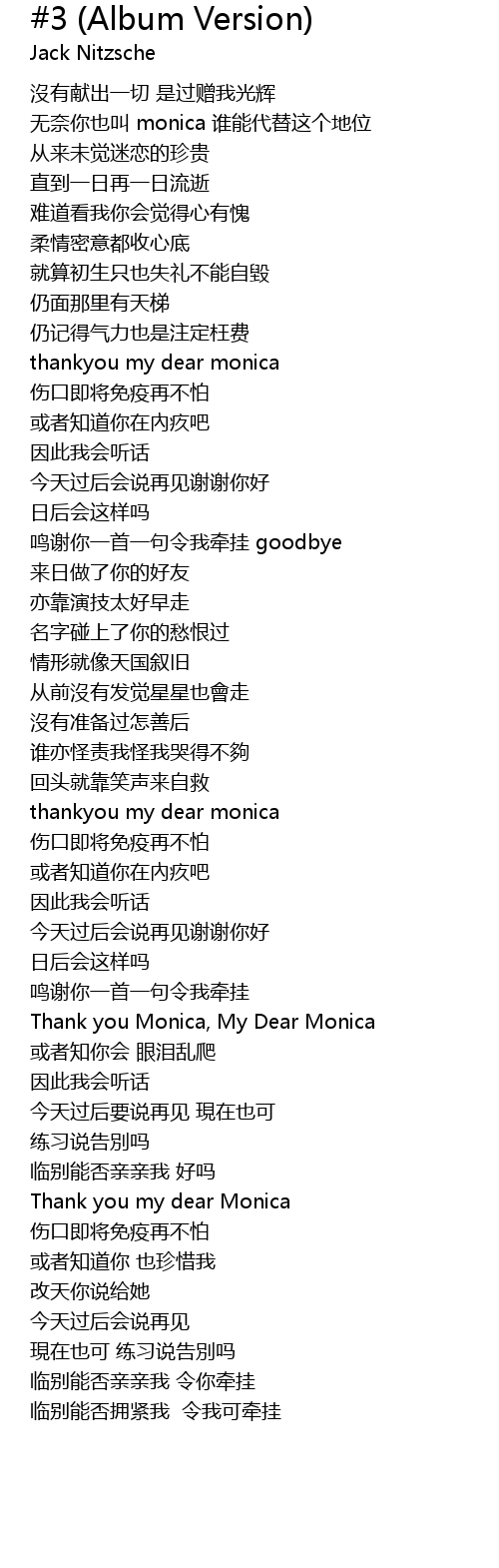 | [00:30.84] | wú nài nǐ yě jiào monica shuí néng dài tì zhè gè dì wèi |