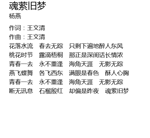 | Song | 魂萦旧梦 |