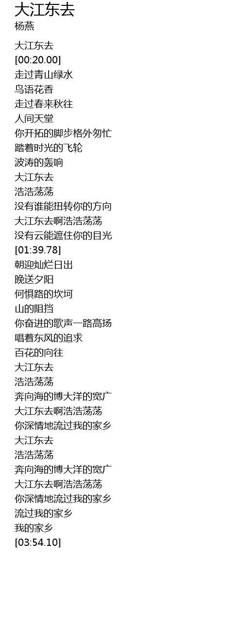 | [02:45.35] | dà jiāng dōng qù a hào hào dàng dàng |