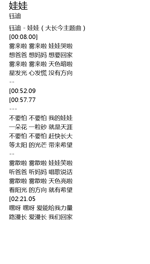 | [01:58.17] | 雾散啦 雾散啦 娃娃笑啦 |