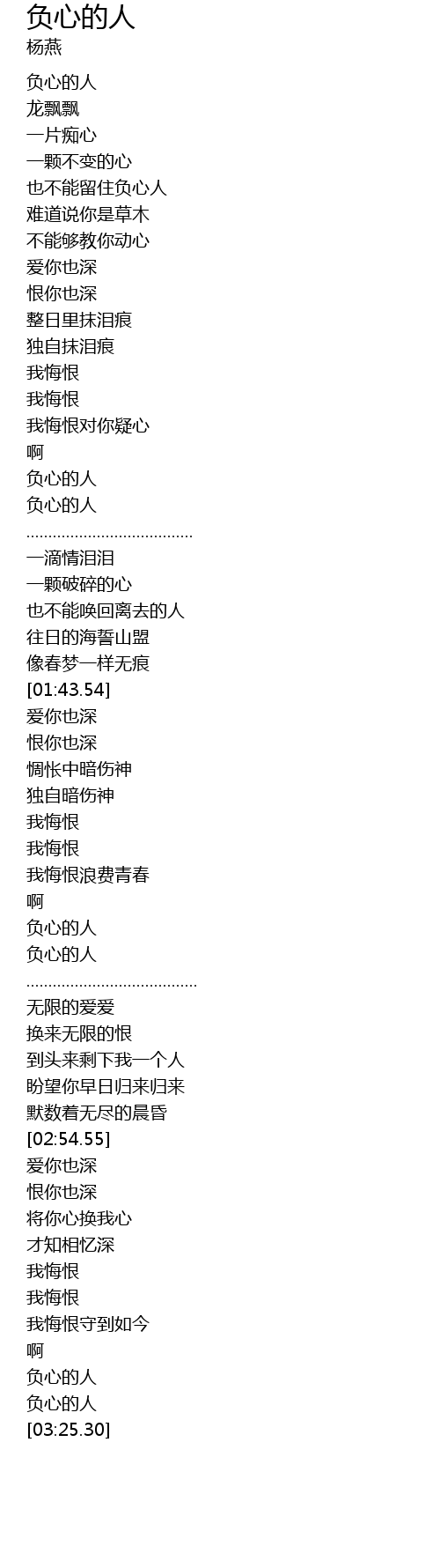 | [00:30.54] | ye bu neng liu zhu fu xin ren |