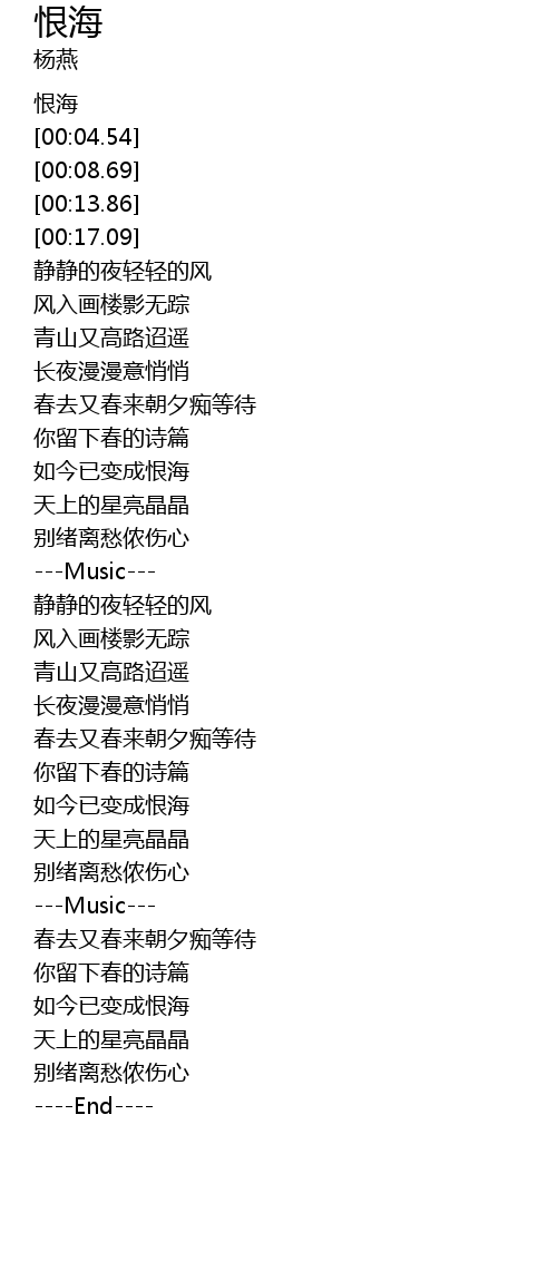 | [00:02.57] | 恨海 |