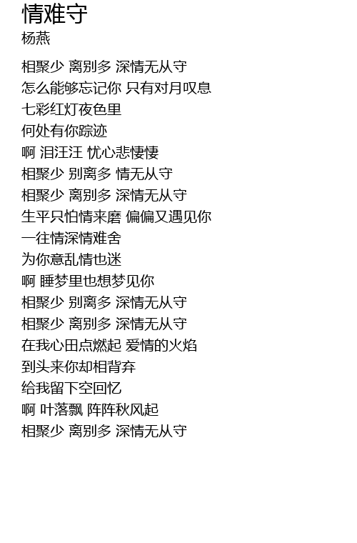 | 相聚少 离别多 深情无从守 |