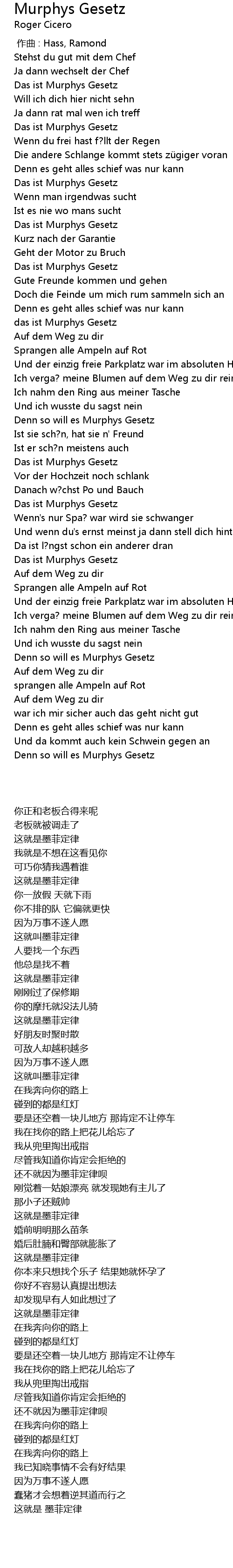| [03:50.800] | Denn so will es Murphys Gesetz |
