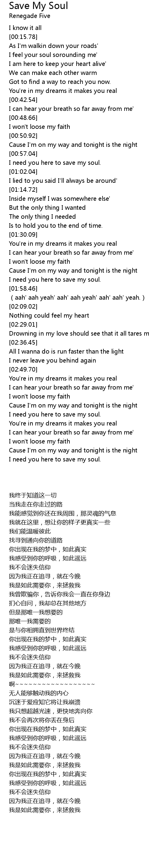 | [00:57.85] | I need you here to save my soul. |