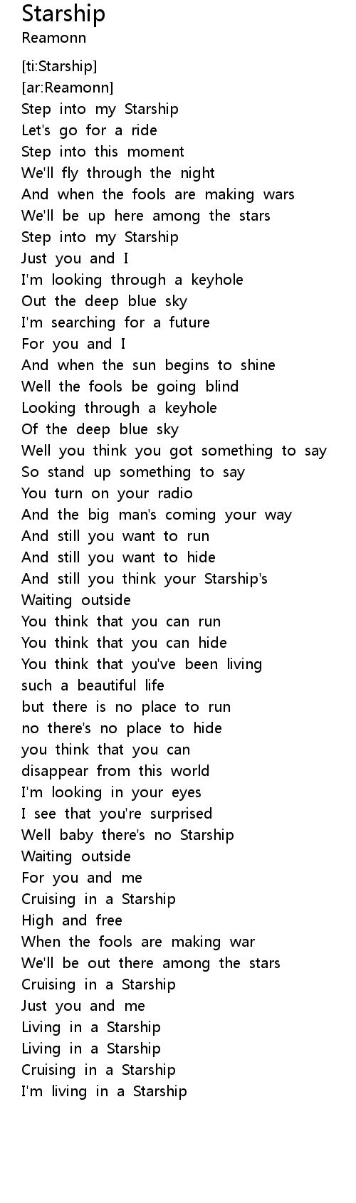 | [00:16.04] | Step into my Starship |