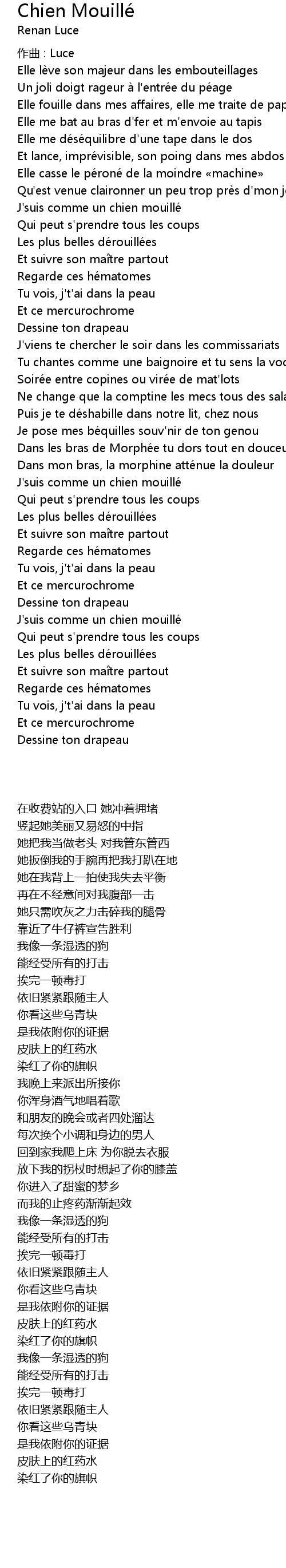 | Song | Chien Mouillé |