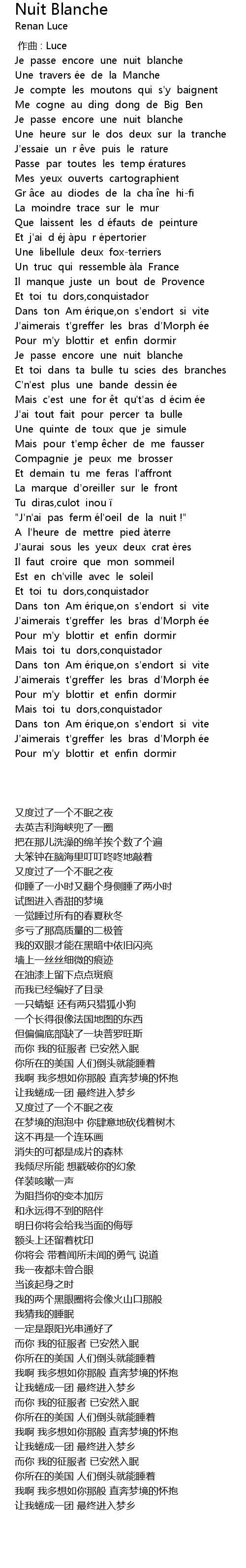 | [01:48.12] | Je passe encore une nuit blanche |