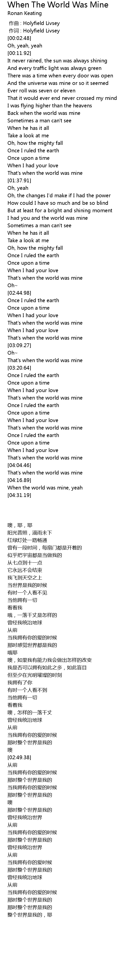 | [02:35.90] | That' s when the world was mine |