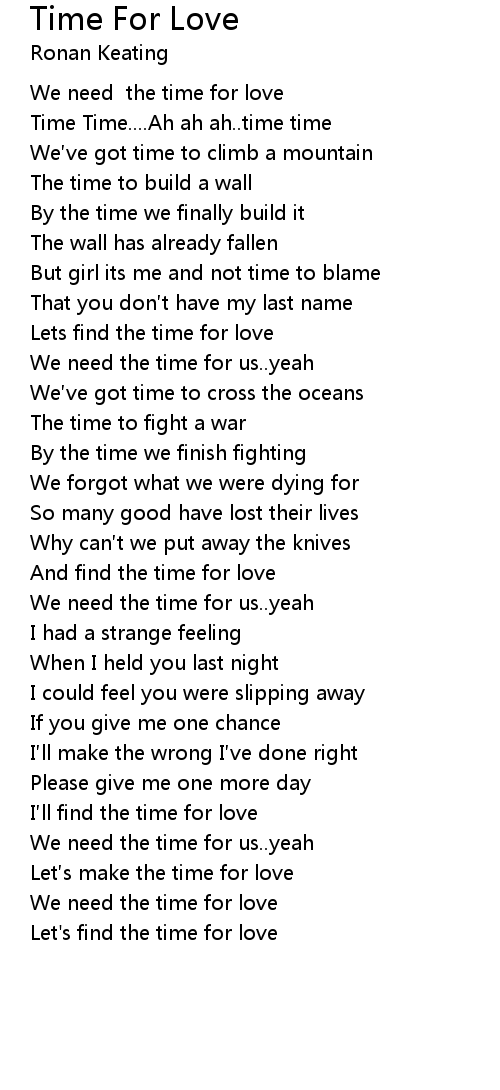 | [00:54.17] | Lets find the time for love |