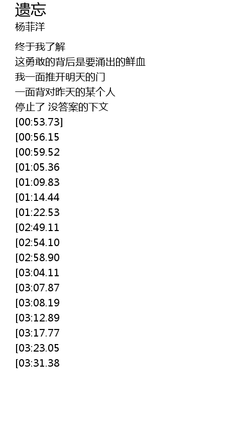 | [03:46.67][03:04.11][01:38.68] | 要忘记你曾甘心的曲折 |