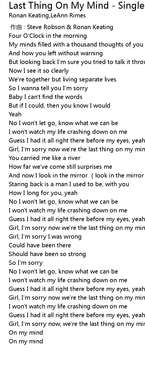 | [02:18.21] | Girl, I' m sorry now we' re the last thing on my mind |