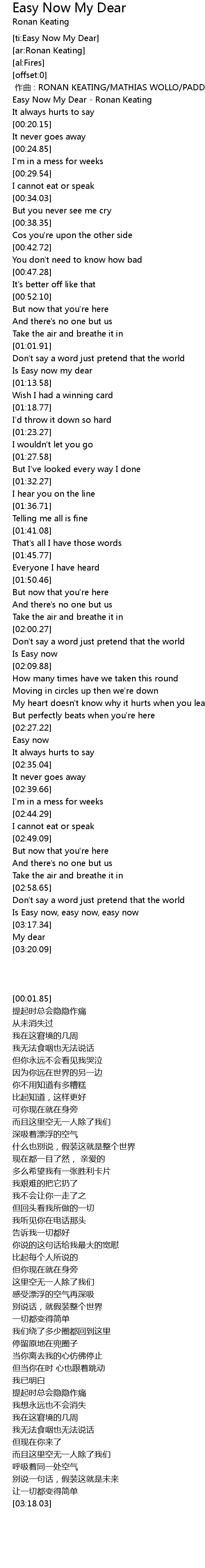 | [00:01.85] | Easy Now My Dear Ronan Keating |