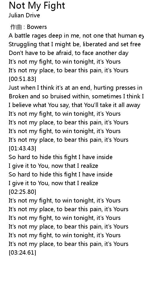 | [00:36.38] | It's not my fight, to win tonight, it's Yours |