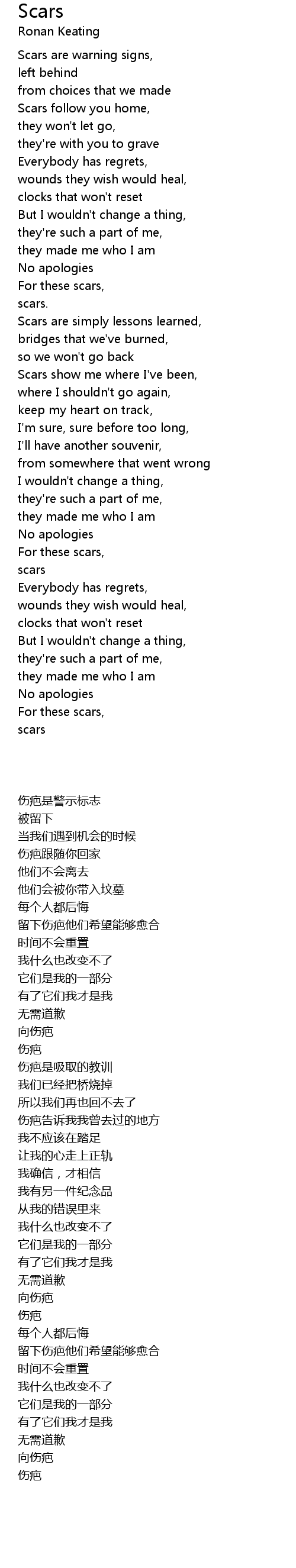 Scars are simply lessons learned, |