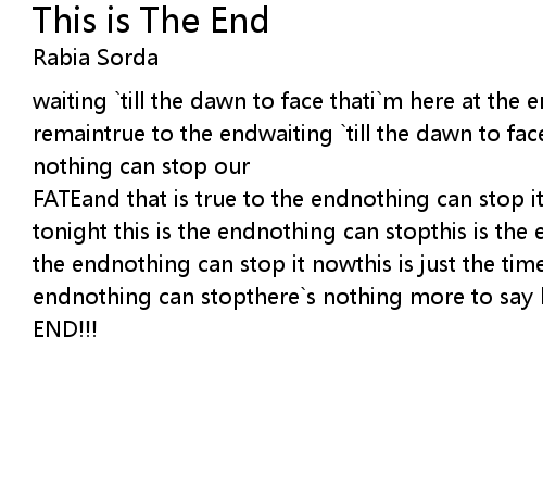 | FATEand that is true to the endnothing can stop it nowthe end of all time`s tonight this is the endnothing can stopthis is the end of all we see, this is the endnothing can stop it nowthis is just the time to face, this is the endnothing can stopthere`s nothing more to say but screamingthis is the | |
