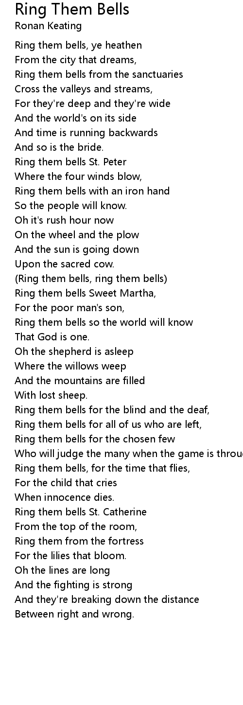 (Ring them bells, ring them bells) |