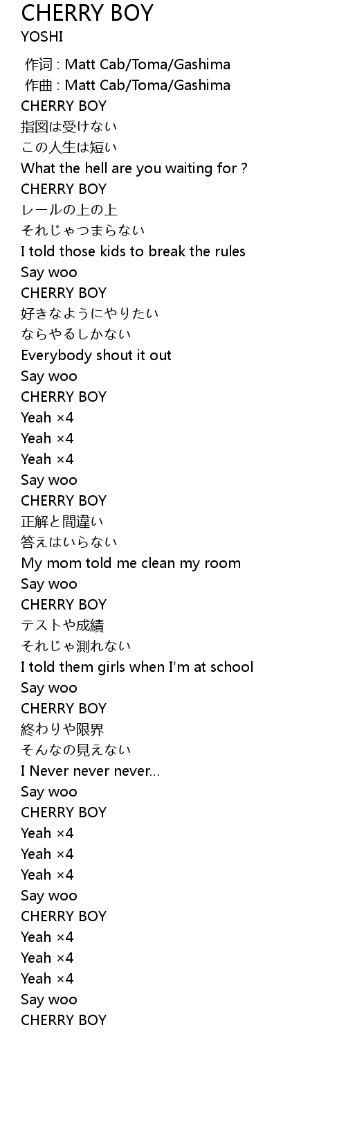 | [00:25.37] | CHERRY BOY |
