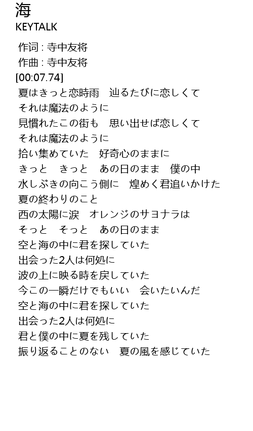 | [03:20.64] | 振り返ることのない 夏の風を感じていた |