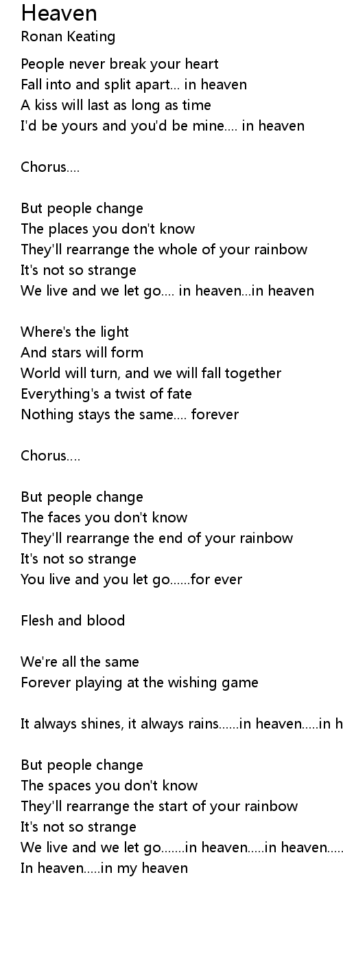 | It always shines, it always rains...... in heaven..... in heaven | |