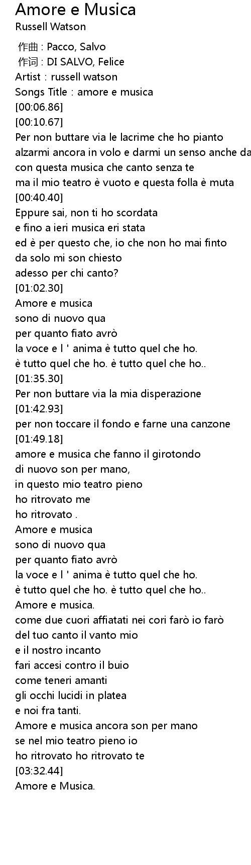 | [00:03.31] | Songs Title:amore e musica |
