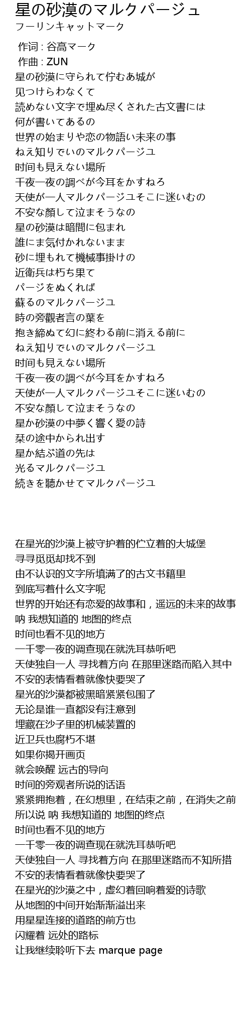 | [03:29:900] | 星か砂漠の中夢く響く愛の詩 |