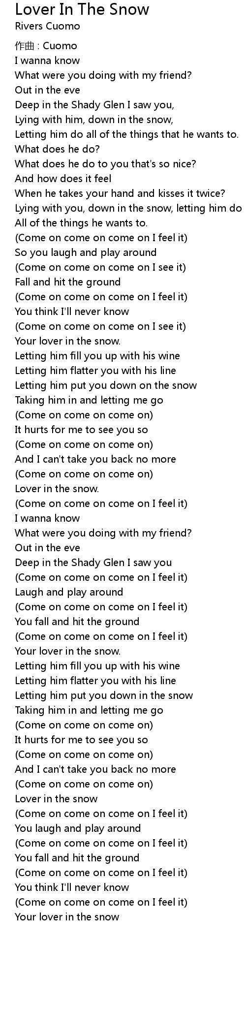 | Song | Lover In The Snow |