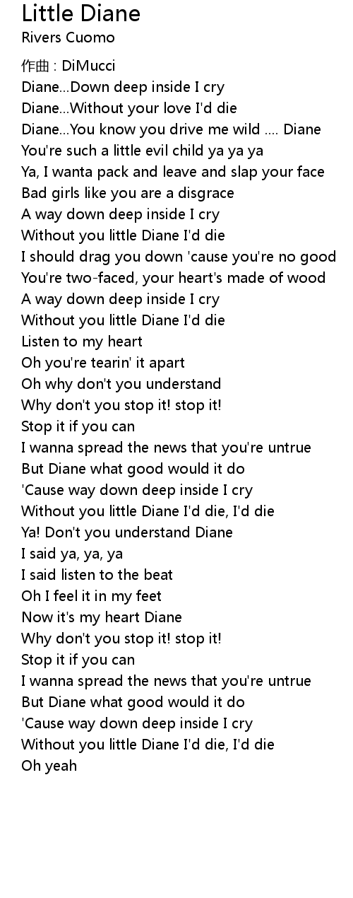 | Diane... Down deep inside I cry | |