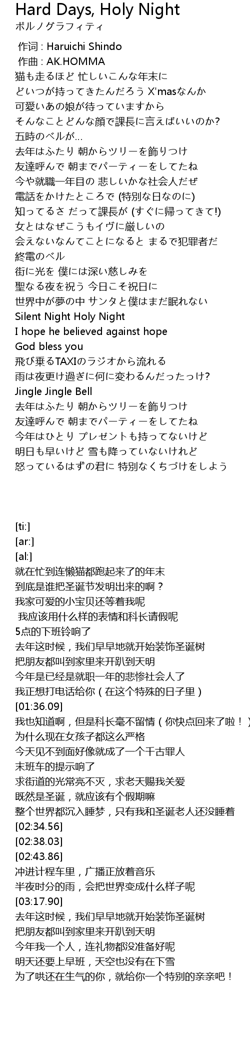 | [02:06.84] | 聖なる夜を祝う 今日こそ祝日に |