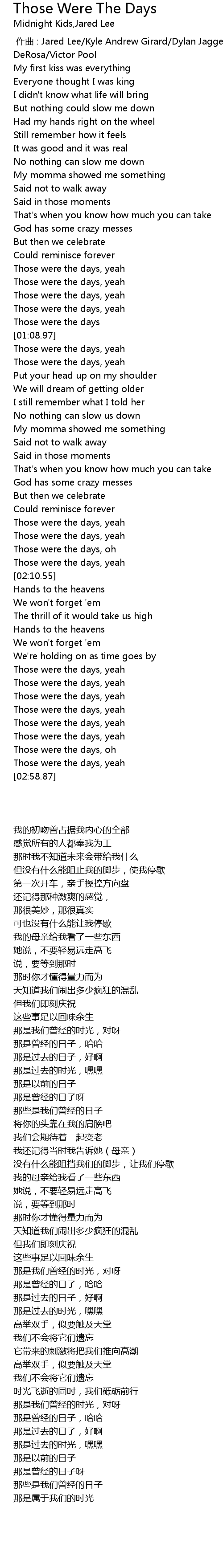 | [00:58.52] | Those were the days, yeah |
