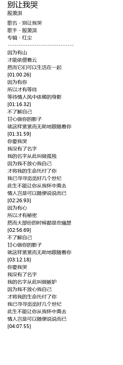 | [00:00.80] | gē míng bié ràng wǒ kū |