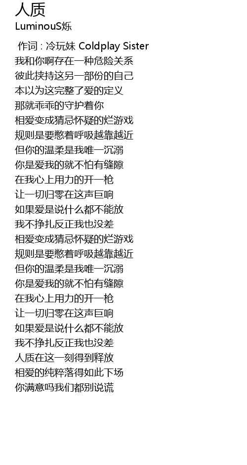 | [00:00.000] | 作词 : 冷玩妹 Coldplay Sister |