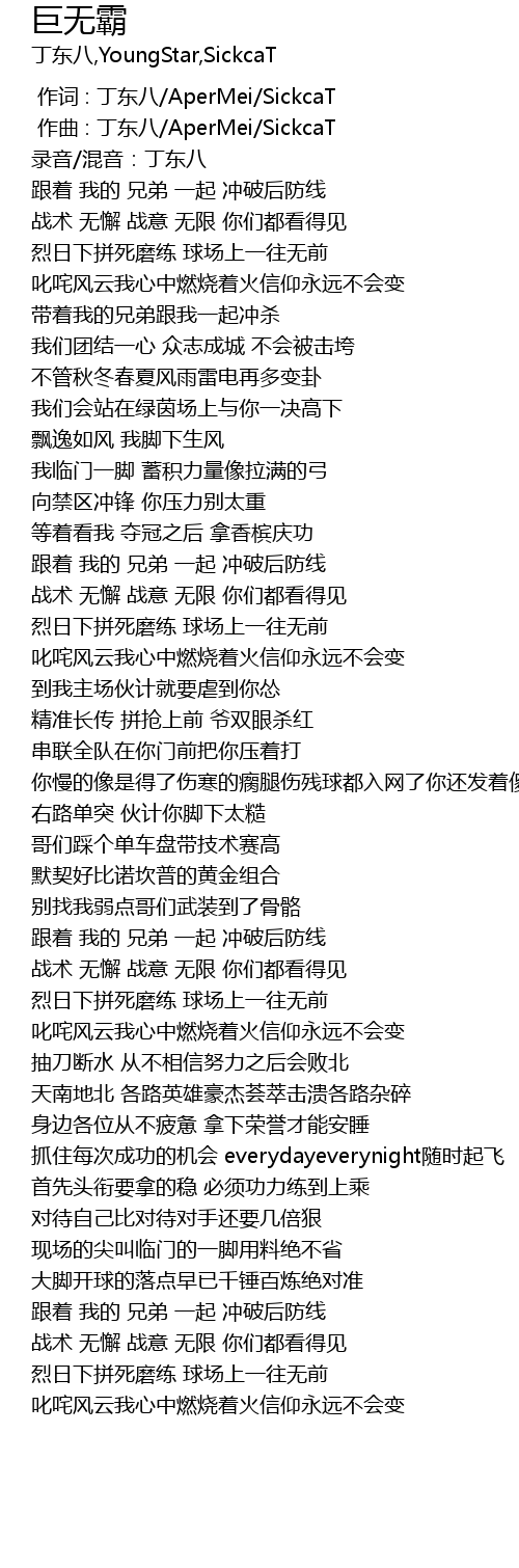| [01:50.822] | 身边各位从不疲惫 拿下荣誉才能安睡 |